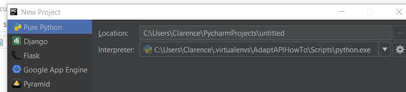 You can just use whatever IDE or text editor, but here I'll use PyCharm. So first chose your virtual environment instead of