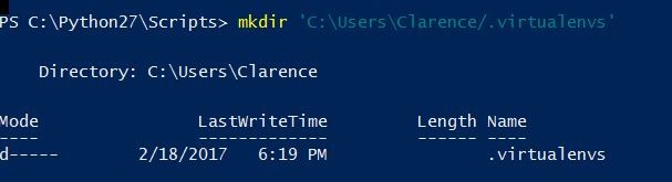scripts directory of your Python 2.7 location. Type pip install virtualenv then
