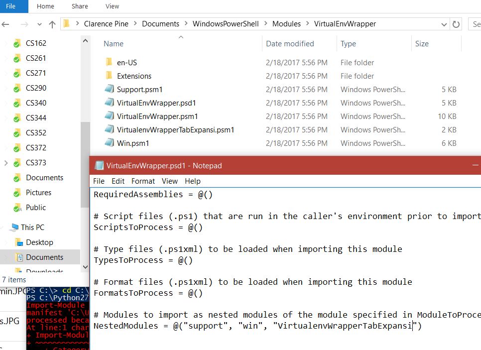 VirtualEnvWrapper.psd1 stored in your powershell modules directory and change the NestedModules argument to match